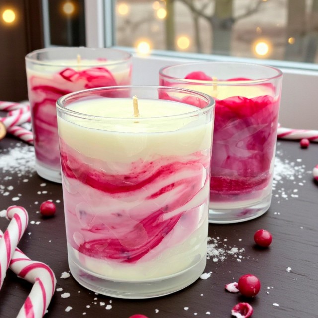 Dekorativt, håndlaget duftlys med en fruktig twist av klassikeren Candy Cane