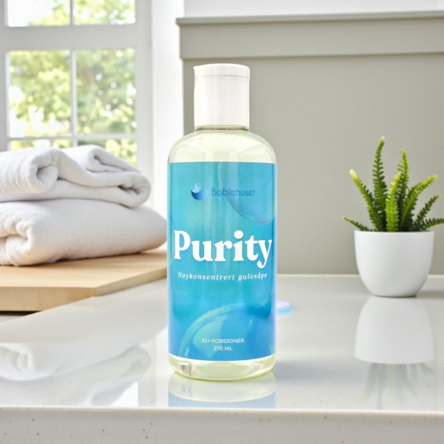 Purity er en luksuriøs, høykonsentrert gulvsåpe utviklet for hjem som setter kvalitet og trygghet først. Den unike formuleringen er helt fri for skadelige kjemikalier og trygg for både mennesker og dyr. Selv personer med astma opplever Purity som skånsom og behagelig i bruk, takket være den rene, milde basen!