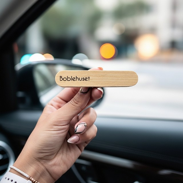 Oakly kombinerer naturlig lys treverk med tidløs design for å gi bilen et lyst og friskt uttrykk. Den er gravert med Boblehuset-logo og utstyrt med et silikonfeste, slik at du enkelt kan feste den på ventilasjonen og fordele duften i hele bilen.